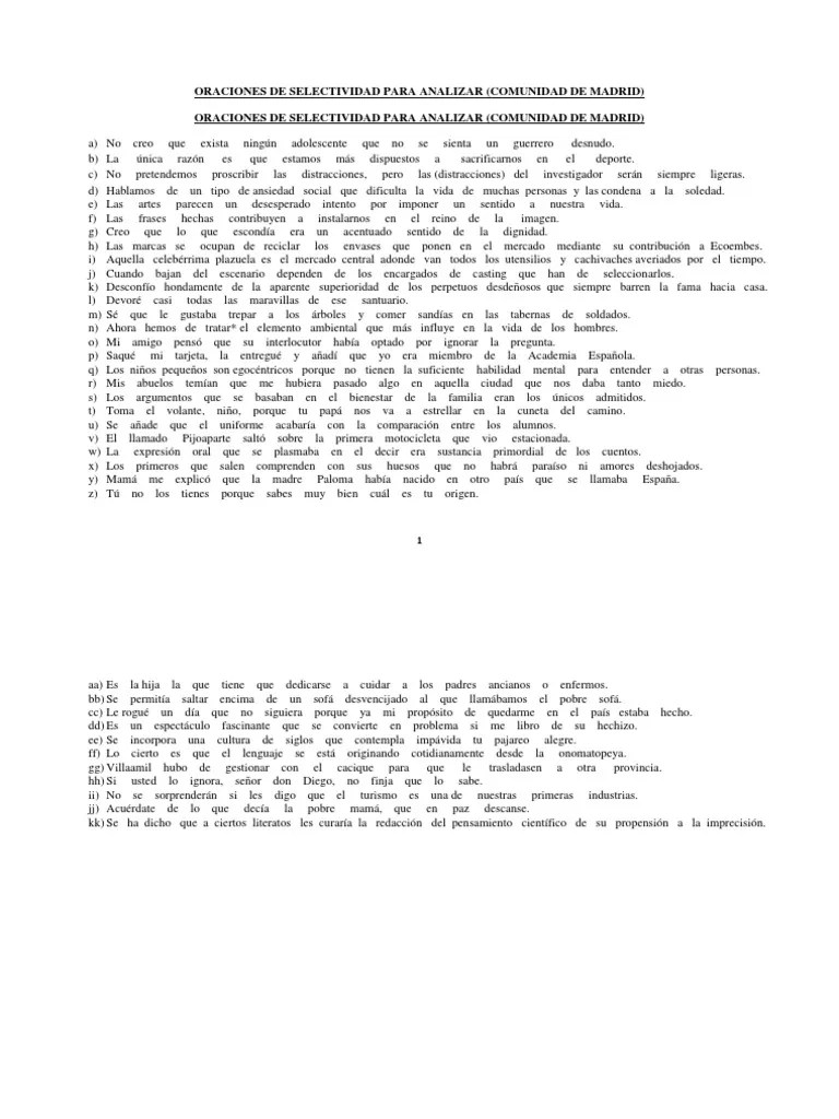 En este vídeo se puede observar el análisis de una oración subordinada sustantiva, que se preguntó en la opción a del examen de evau de 2014, en la convocatoria de septiembre. 21.04.2017 · desesperado intento por imponer un sentido a nuestra vida, tan efímera como insensata. Haga un comentario de texto del fragmento que se propone contestando a las preguntas siguientes: Haga un comentario de texto del fragmento que se propone contestando a las preguntas (félix de azúa, autobiografía sin vida, 2010) cuestiones 1. La solución está en el minuto 03:25.. A) enuncie el tema del texto (0,5 puntos);
